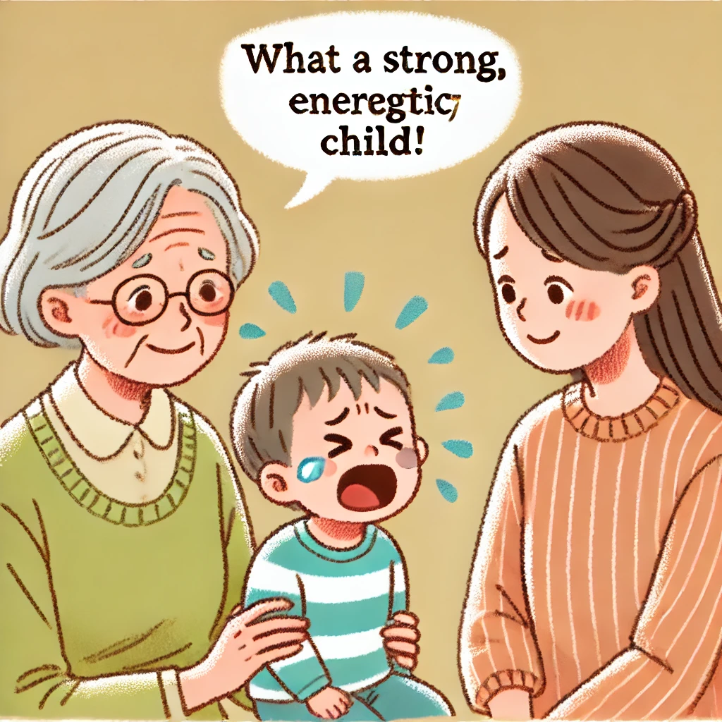 普通なら、泣き止ませるようにと母親を批判してしまいがちですが、おばあちゃんは前向きなフィードバックで場を和ませました。